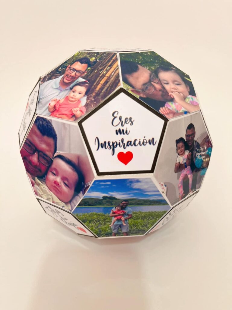 - Agregar Fotos y Frases: Una vez que la estructura del balón esté ensamblada, aplica el papel fotográfico adhesivo con las imágenes y frases en las áreas designadas. Presiona firmemente para asegurarte de que queden bien adheridas.